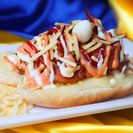 Traditional colombian breakfast of beans, grilled chicken, corncake and fried plantain